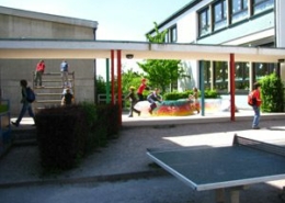 Den Schulhof runden die Turn- und Festhalle AH sowie die neue Sporthalle NH ab.